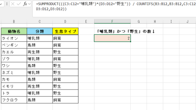 上ではAVERAGEIF関数を用いて0を除いた平均を求めましたが、SUM関数とCOUNTIF関数を用いても対応できます。