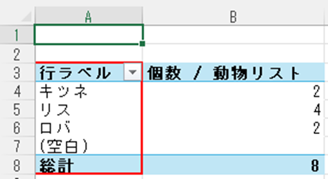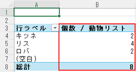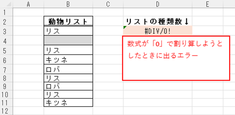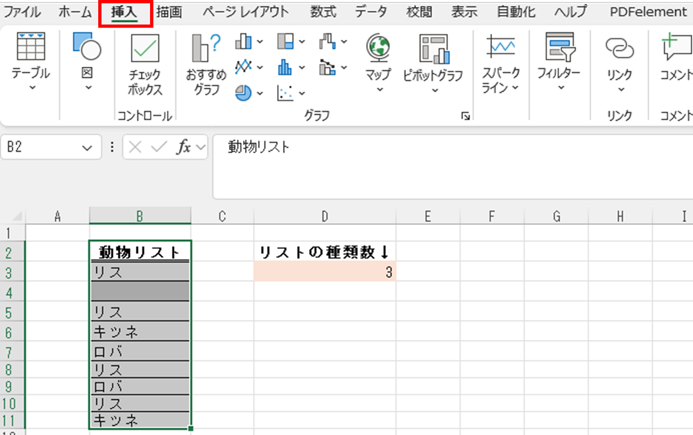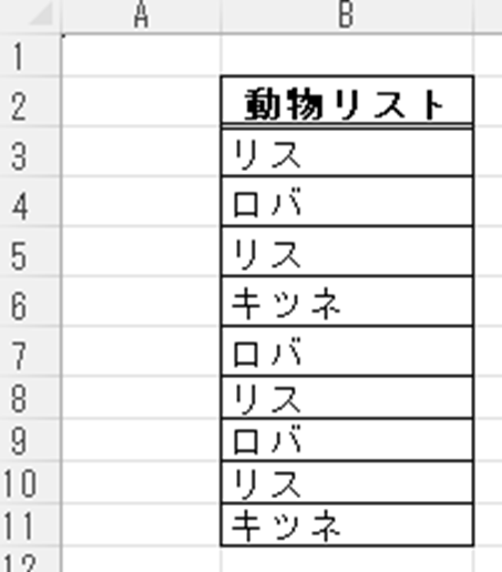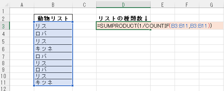 例えば、動物リストに「リス、ロバ、リス、キツネ、ロバ」とある場合、この方法を使えば「3種類」と正確にカウントできるでしょう。